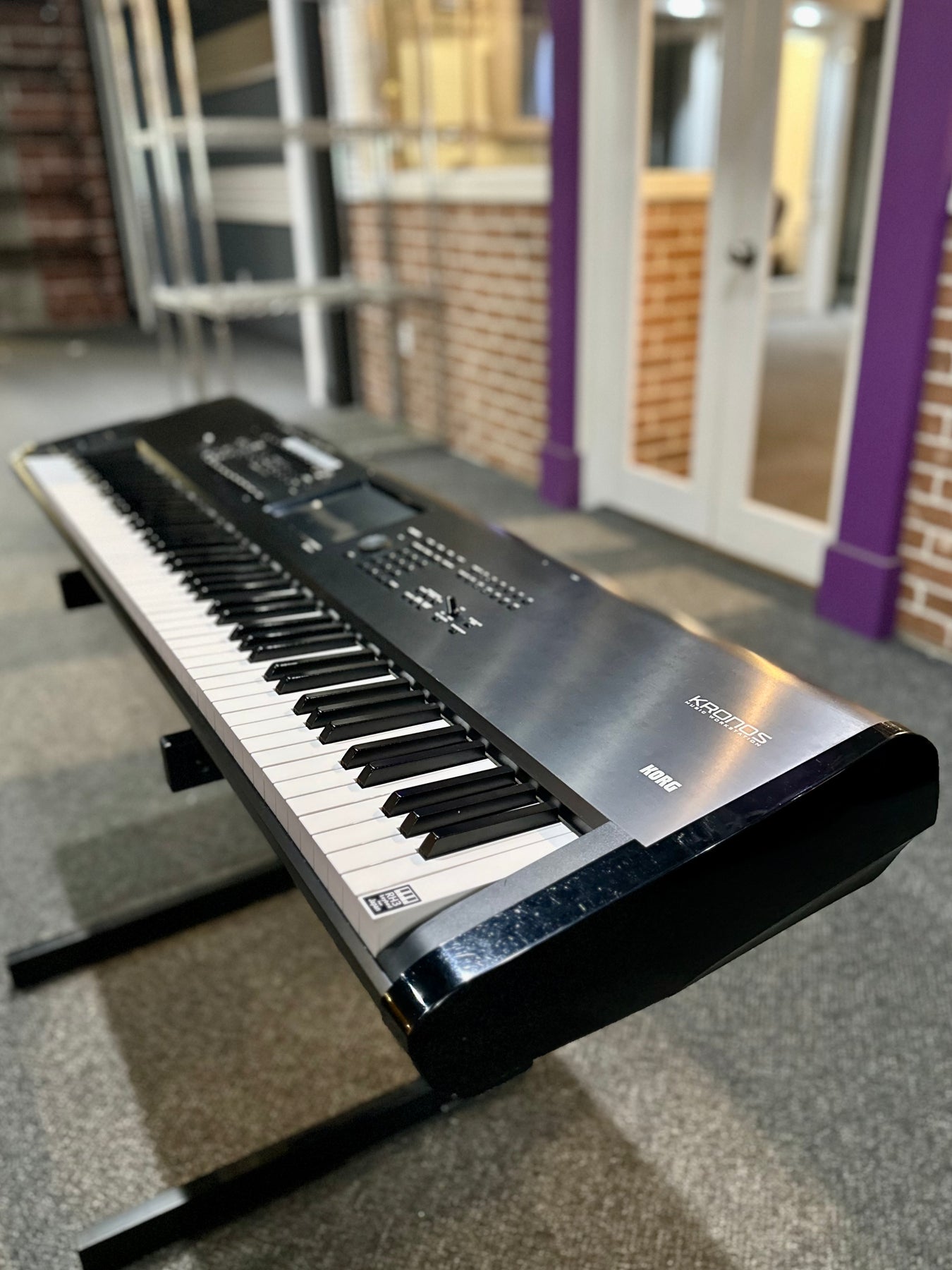 Well loved and ready for you! Experience the impressive capabilities of the original Kronos Music Workstation. This powerful instrument features nine unique sound engines along with innovative technologies that raised the bar for Korg workstations. With Virtual Memory Technology, Kronos accesses extensive piano, drum, and tape-based keyboard libraries directly from its internal solid-state drive. The 8" color TouchView screen, 4-way joystick, ribbon controller, and various controls provide hands-on command. This 88-key version comes equipped with RH3 graded hammer action. This workstation supports smooth transitions between sounds for a seamless performance.