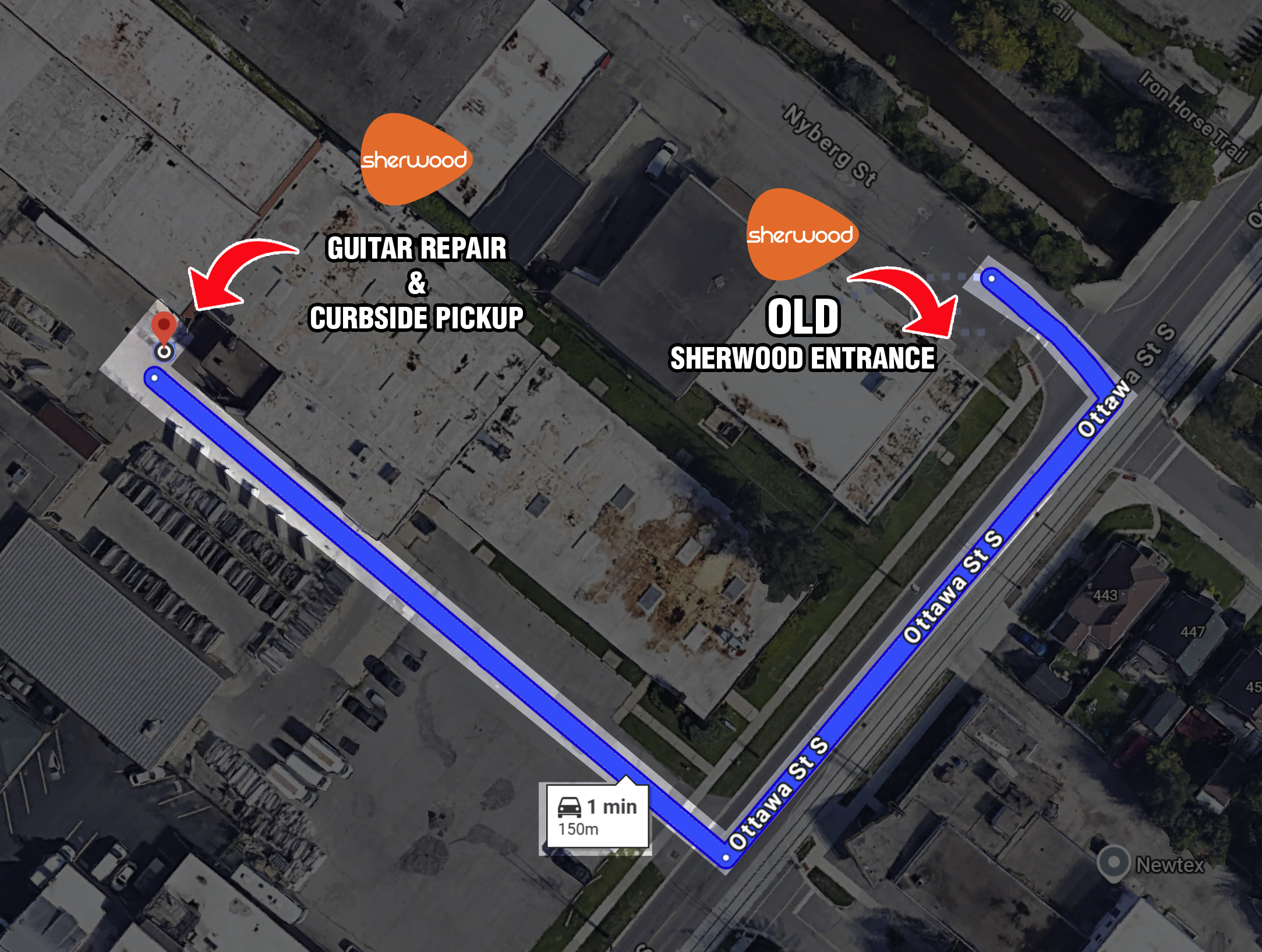 TEMPORARY CURBSIDE PICKUP AND GUITAR REPAIR PICKUP/DROP OFF LOCATION-136 OTTAWA STREET SOUTH, KITCHENER, N2G 3S9