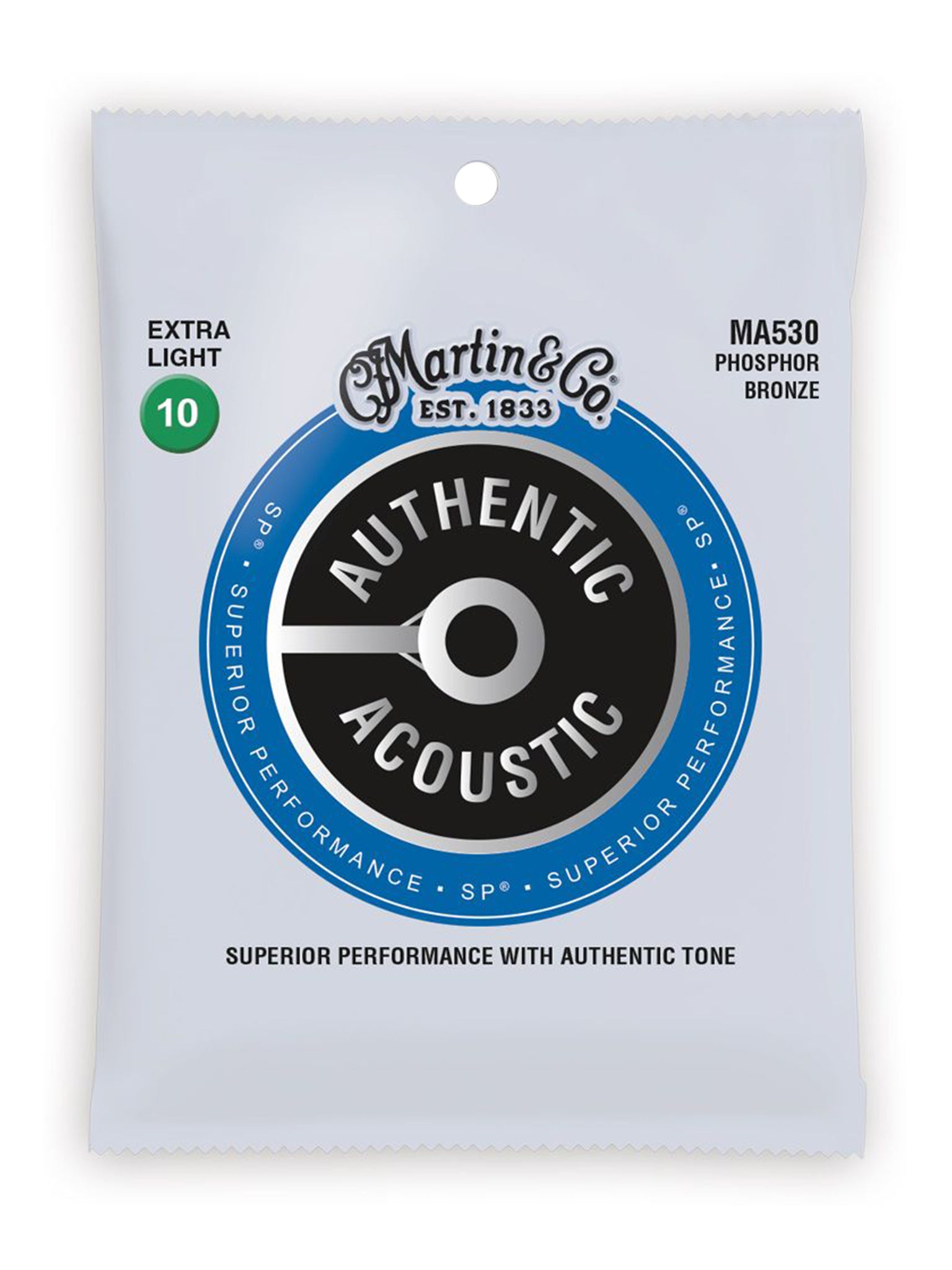 Martin Authentic Acoustic Superior Performance SP strings feature higher tensile strength and tin-plated core wire on all six strings that enable a fuller and more balanced tone, quicker response and increased tuning stability. Our impeccable standards for acoustic guitar tone are embedded in our string design and precision manufacturing process. That's why we make our own.