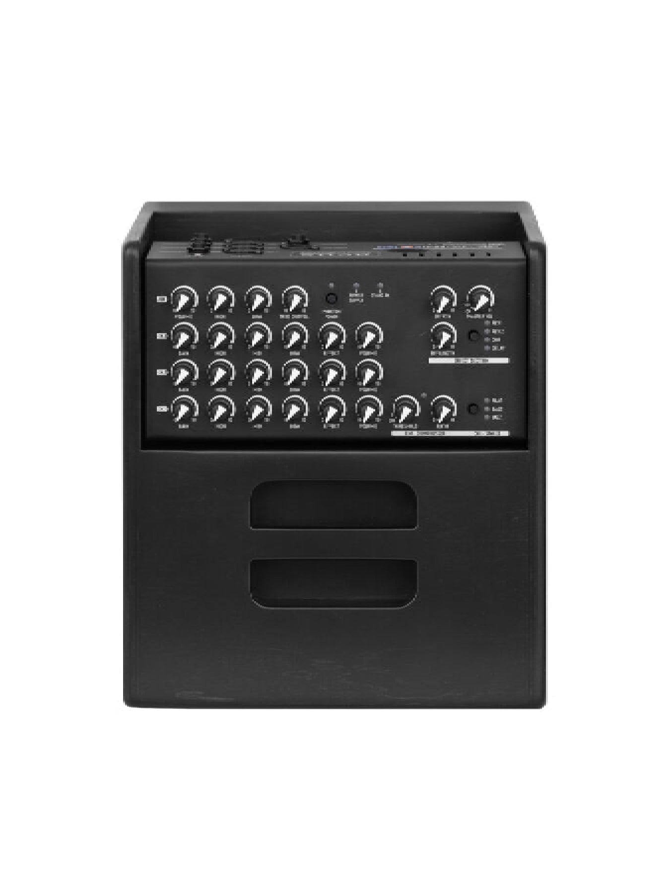 Ideal for classical and acoustic string instruments, the ONEFORSTRINGS 5FERDI meets the needs of even the most advanced musicians. This 70-watt amplifier is equipped with 3 separate inputs, plus an Aux input (TRRS audio in/out and Bluetooth audio in), each with independent volume controls and a 2-band EQ. The three inputs also feature Gain, 3-band EQ, effect send, and volume controls.