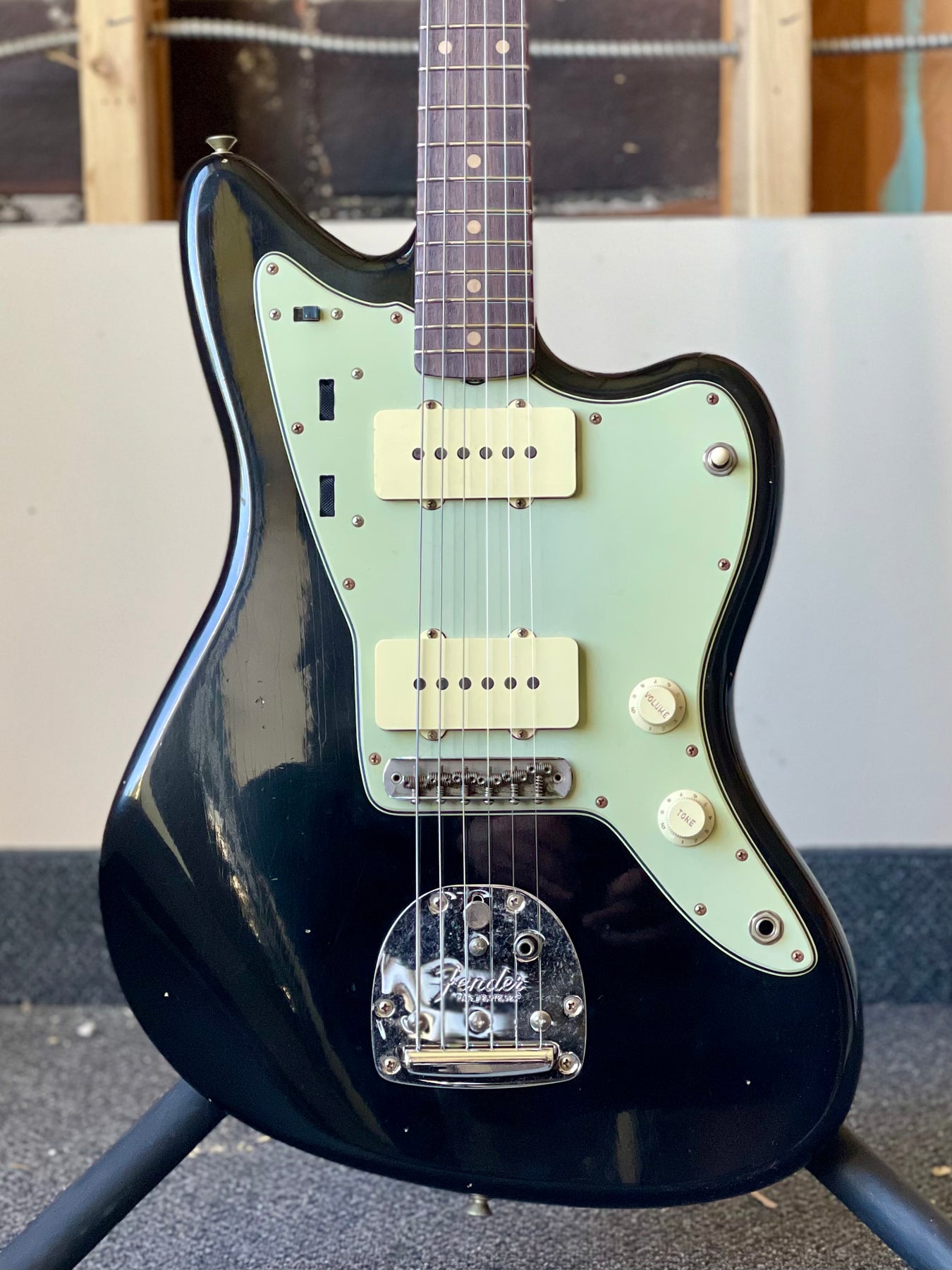 Topped off with vintage-style hardware, a relic'd Jaguar/Jazzmaster bridge, mint green pickguard, and the tonal finesse of a Tone Saver treble bleed, this Jazzmaster is built for players who demand heritage with attitude. It comes with a Deluxe hardshell case, strap, and a Certificate of Authenticity.