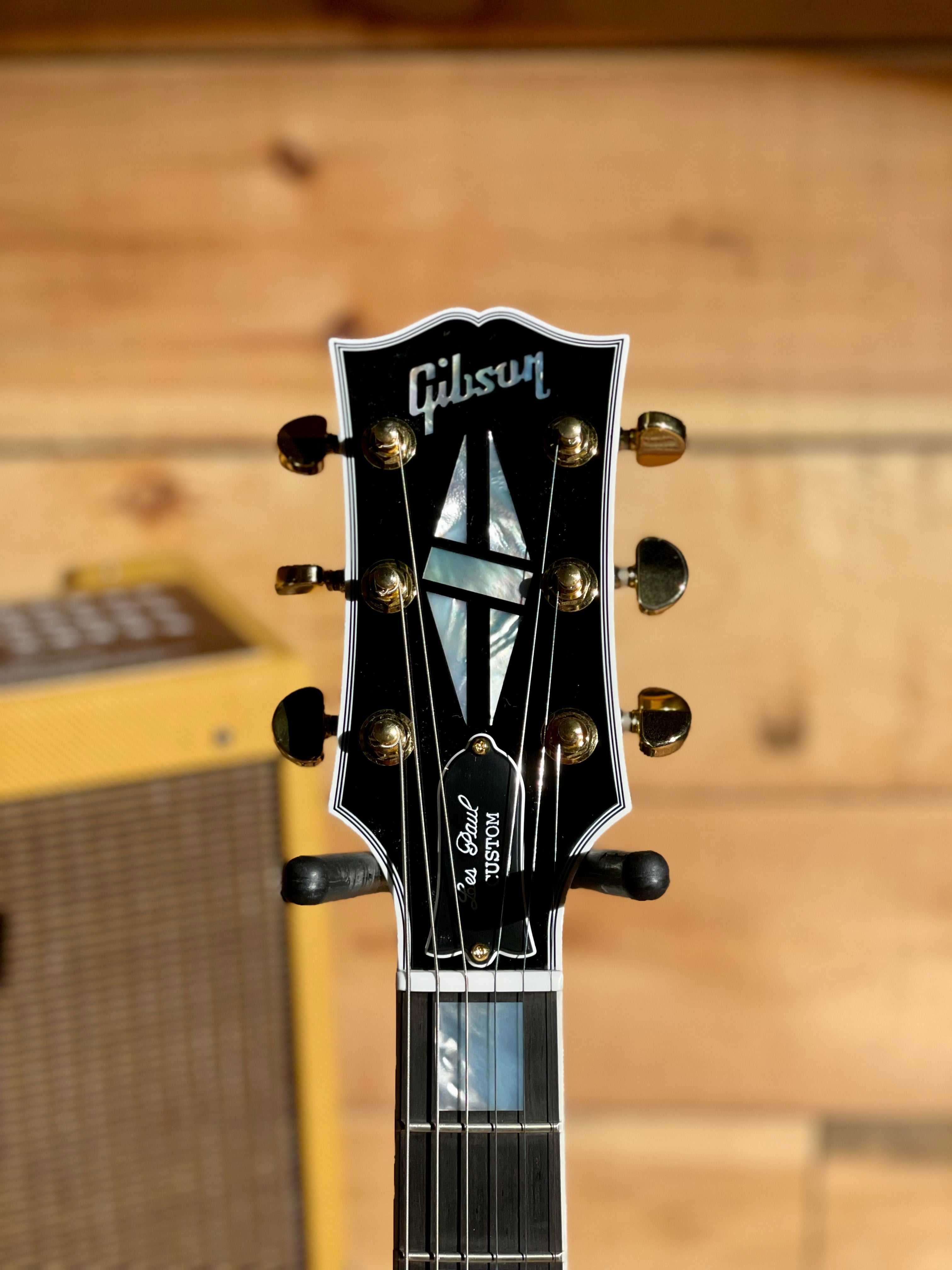 As the flagship model from Gibson Custom Shop, the Les Paul Custom lives up to the high standards set by its 1950s archetype while evolving to a level of tone and performance more suited to today's musical demands. Beneath the layers of its "tuxedo" appointments lies the crisp, edgy voice of a matched 490/498 humbucker set, a solid Ebony fingerboard, a long neck tenon for maximum sustain and a two-piece maple top over a solid mahogany body which adds the perfect amount of sonic bite to everything from jazz to hard rock. It sounds as good as it looks, and it looks as good as it sounds!