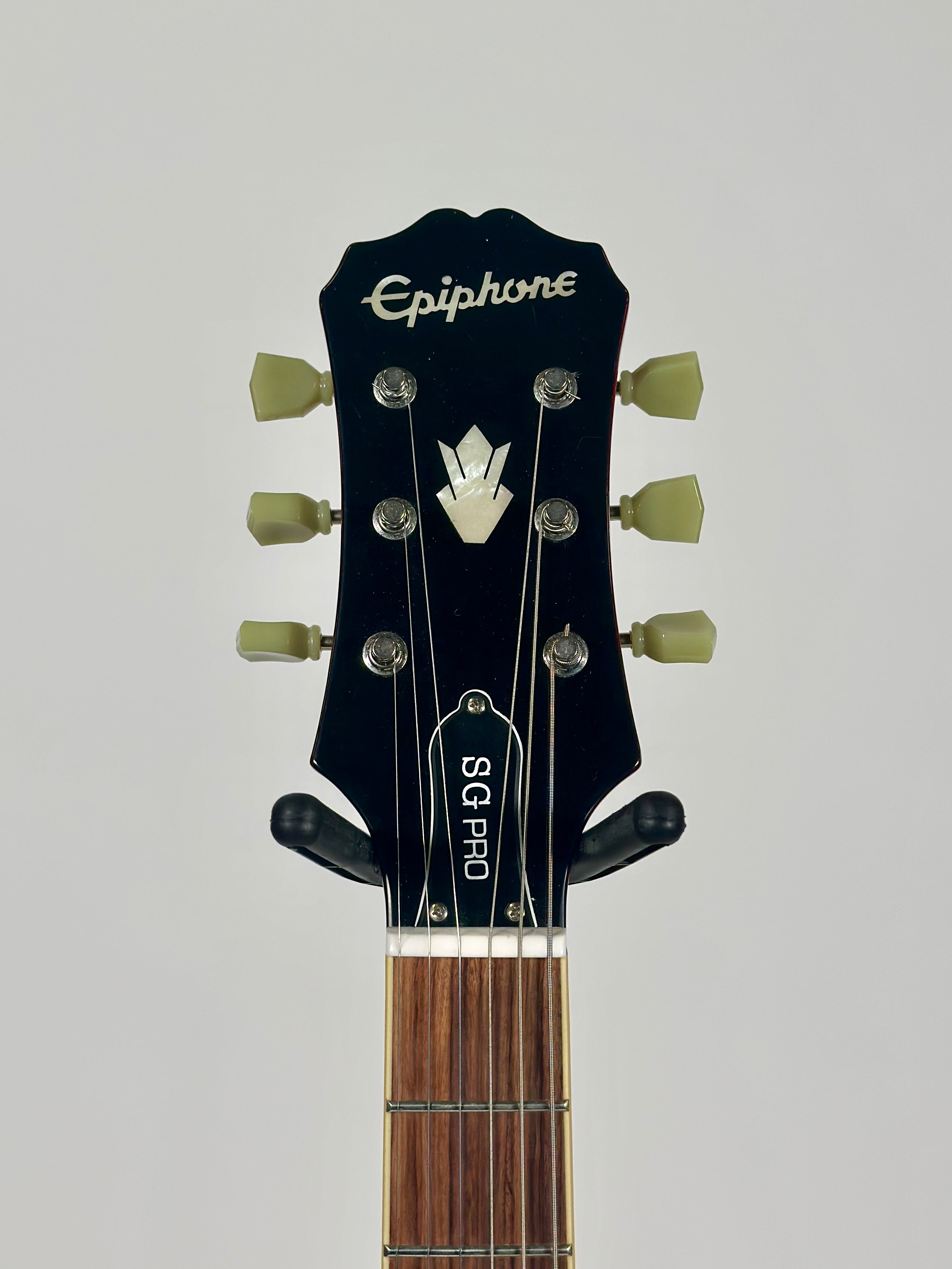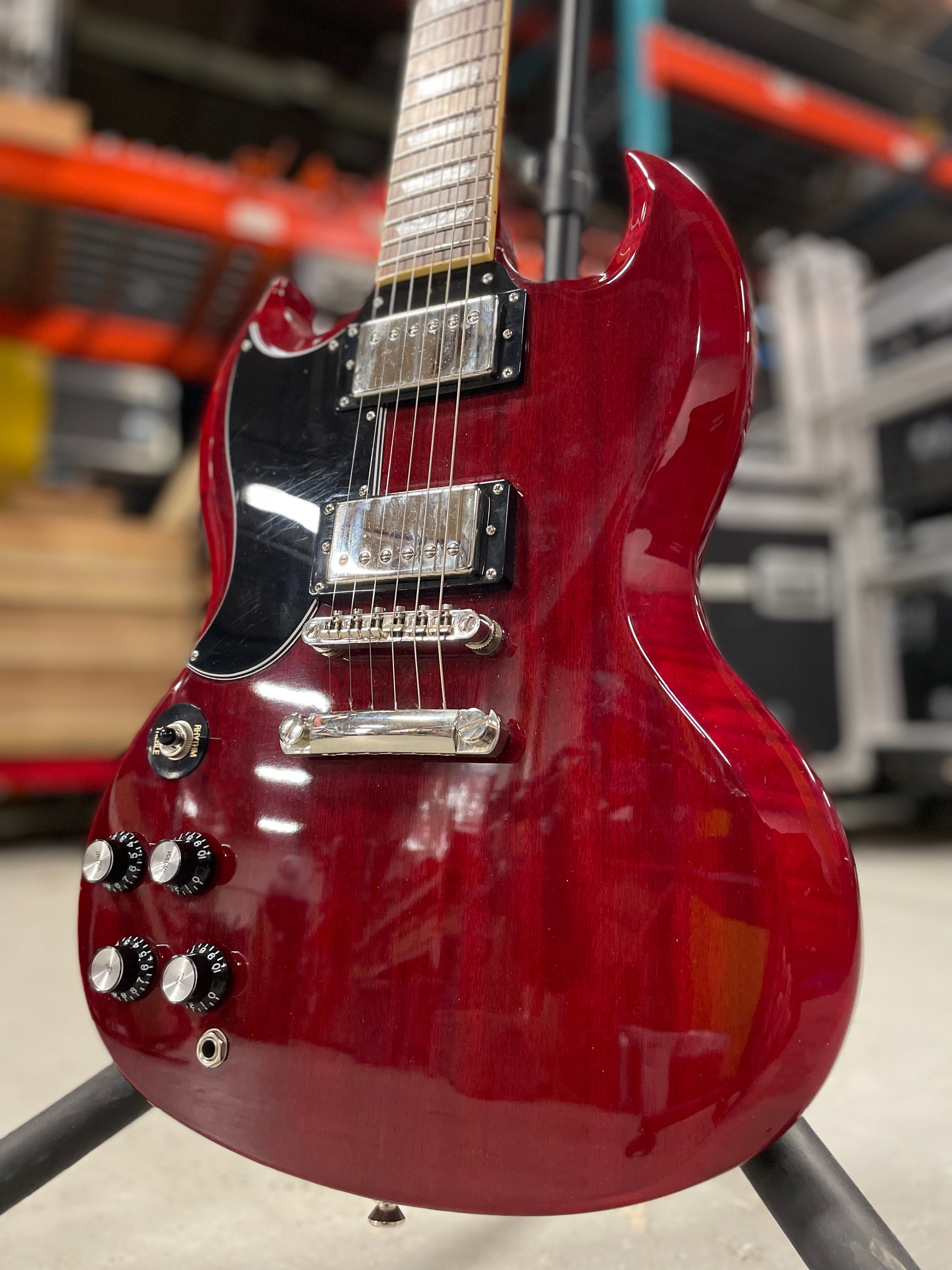 The G-400 PRO is inspired by the late 60s era SGs, both a players and collectors favorite, and uses the same dimensions and build techniques as vintage SGs made in the Kalamazoo, Michigan, factory during that classic era. The solid, tone-rich mahogany carved body gives the guitar a balanced feel on stage and in the studio (unlike cheap imitations that tend to be neck-heavy). The new Wilkinson Vintage Classic tuners are also lighter weight, which makes your G-400 PRO feel perfectly balanced on stage and in the studio. The SlimTaper "D" profile mahogany neck has a 24.75" scale with 24 frets and a 12 radius for incredible reach thanks to the SGs classic cutaway. And for that one-of-a-kind SG feel, the G-400 has a rosewood fingerboard with a 1.68 nut and pearloid trapezoid inlays. The truss rod cover is the classic Kalamazoo bell shape with SG PRO in white.