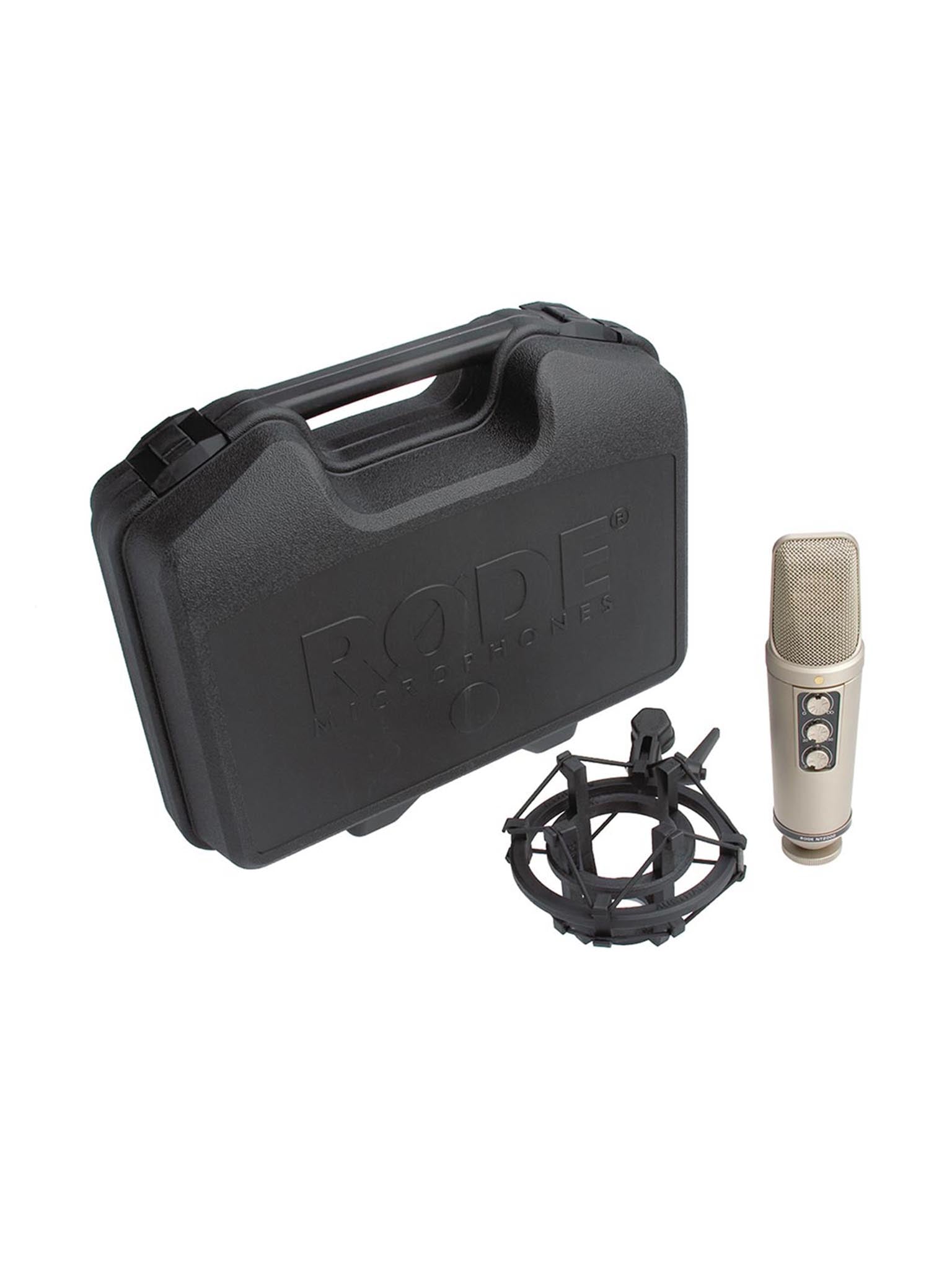 The RØDE NT2000 microphone is a studio-quality large diaphragm condenser with seamlessly variable polar patterns. Its polar patterns selection, filter and pad are conveniently located on the front of the microphone body for ease of use.