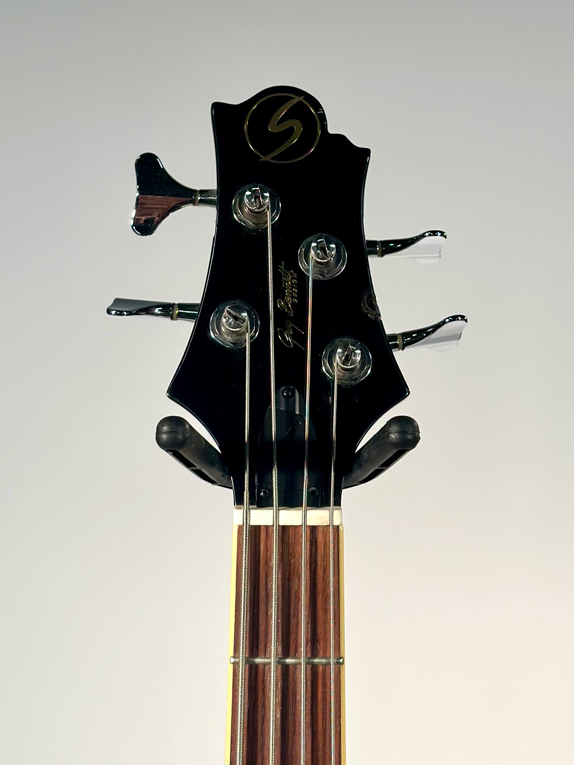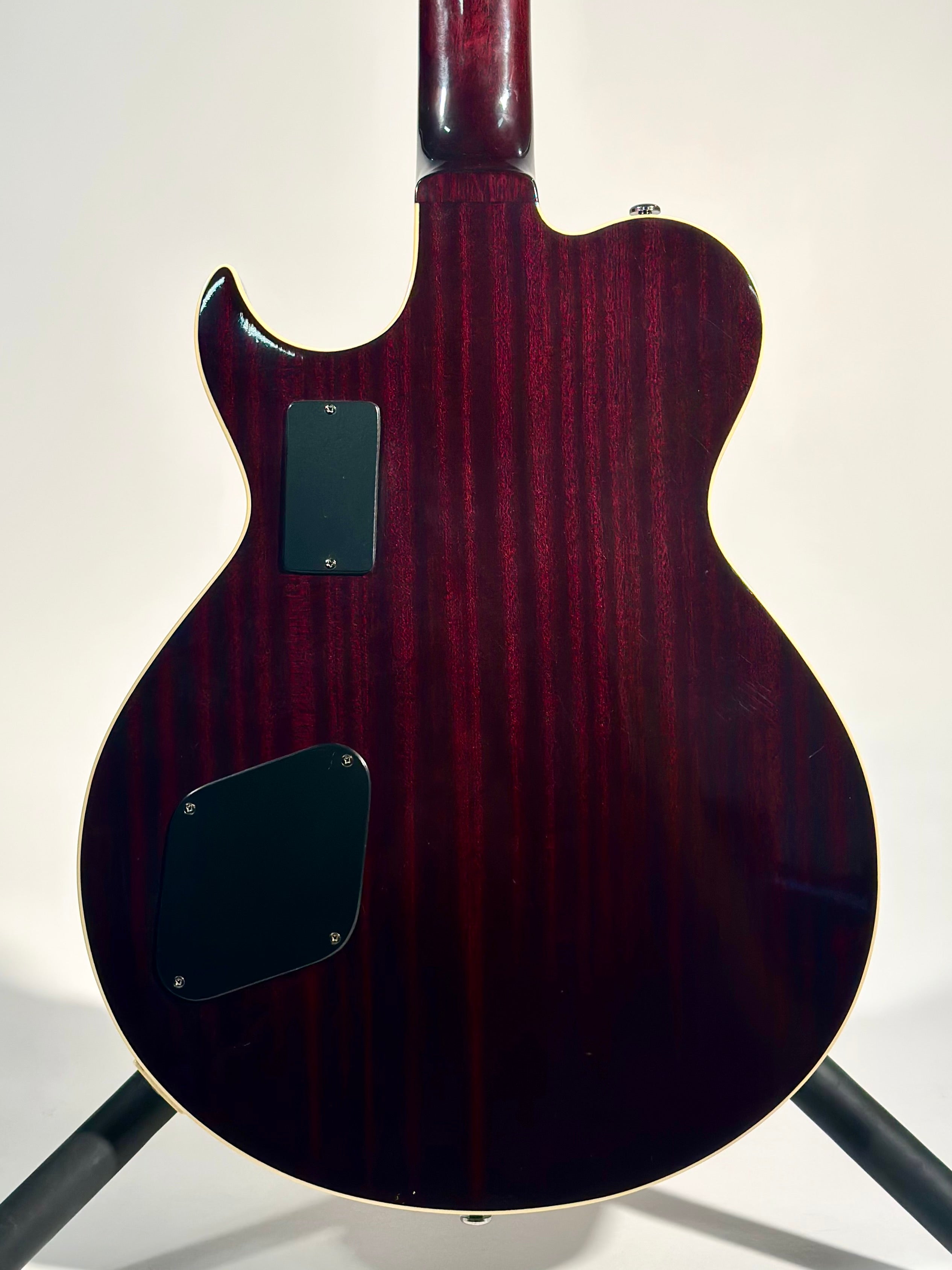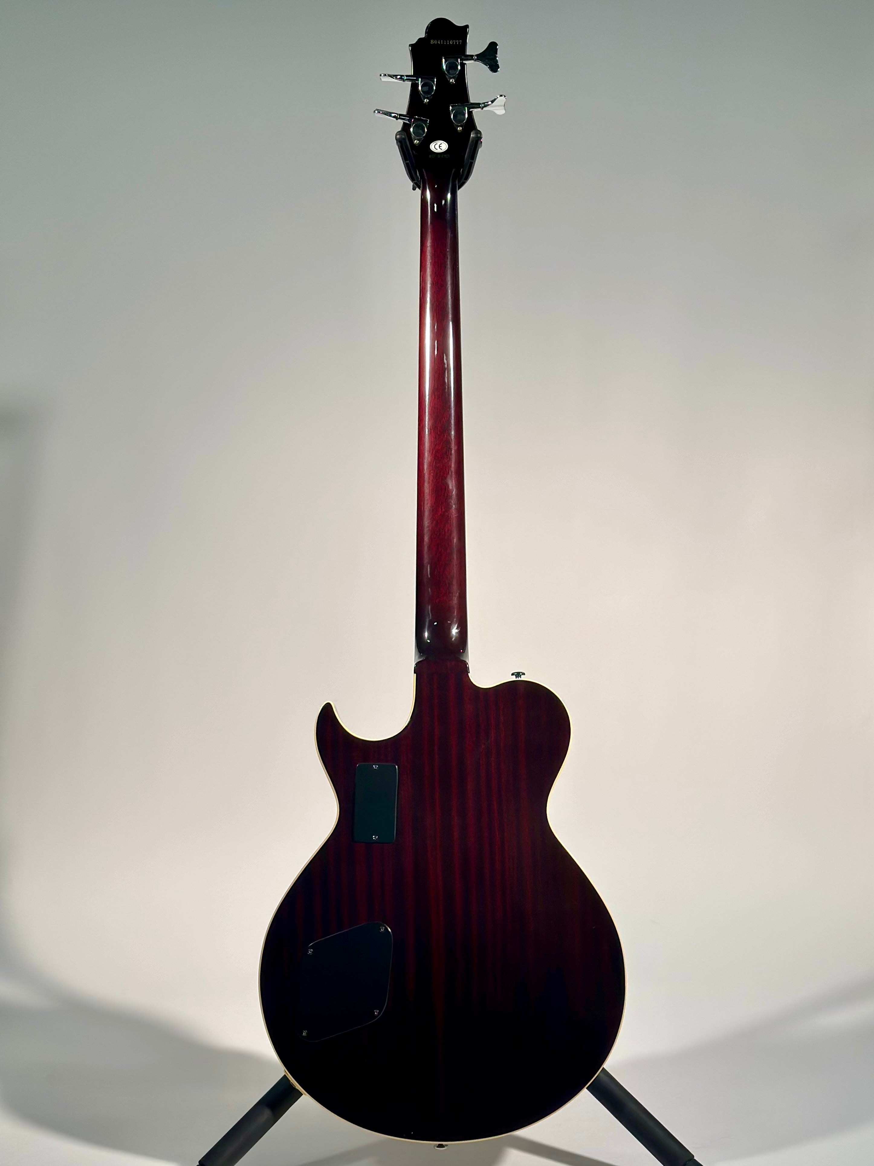 Electronics have been modified slightly with a 3-way pickup selector, master volume, and bass/treble controls.