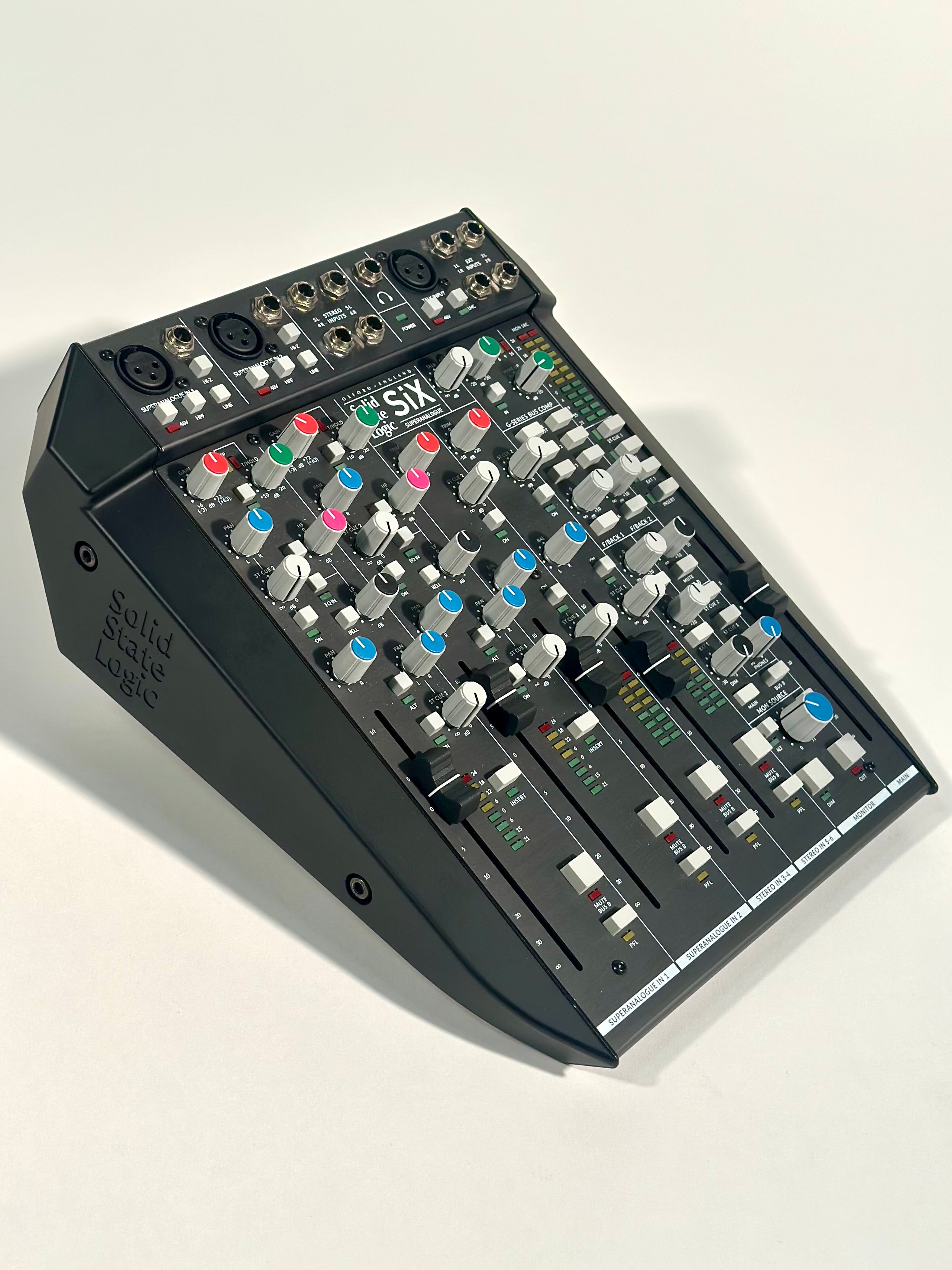 SiX is a condensed professional console for use in the studio, in post-production, on stage, and for podcasting. SiX offers big console sound and an impressive set of utility features in a format that is small enough to stick in a bag a go wherever you need it. SiX is stunning value; it offers two recording channels with SuperAnalogue™ mic pres, two band EQ, an essential one knob version of the classic SSL Channel Compressor, a new two-band Channel EQ, inserts and 100mm faders. There is a two-knob version of the legendary G-Series Bus Compressor on the main mix bus and the unique Listen Mic Compressor on the Talkback. In mixdown mode it is a very capable twelve channel summing system that offers analogue detail, depth and width to your mixes.