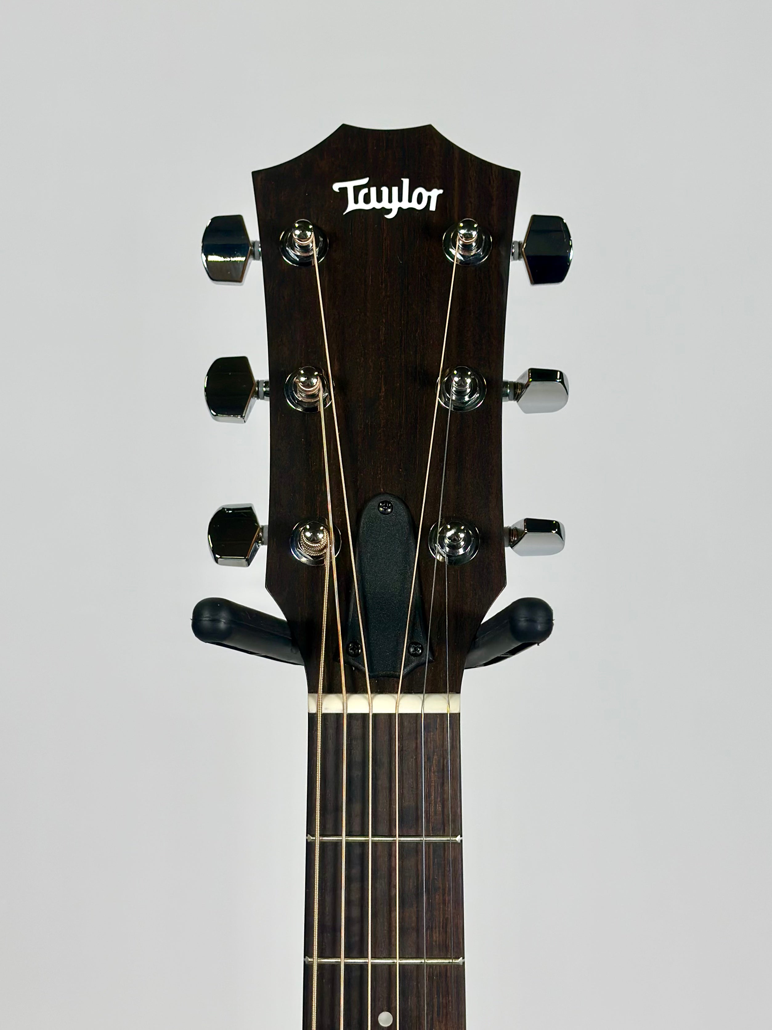Layered Sapele Body Wood: Taylor’s layered backs and sides incorporate three layers of wood, featuring a middle core of poplar with a veneer on each side. While layered woods won’t produce quite as complex a sound as solid woods, they allow Taylor to blend exotic looks with climate-resilient construction.