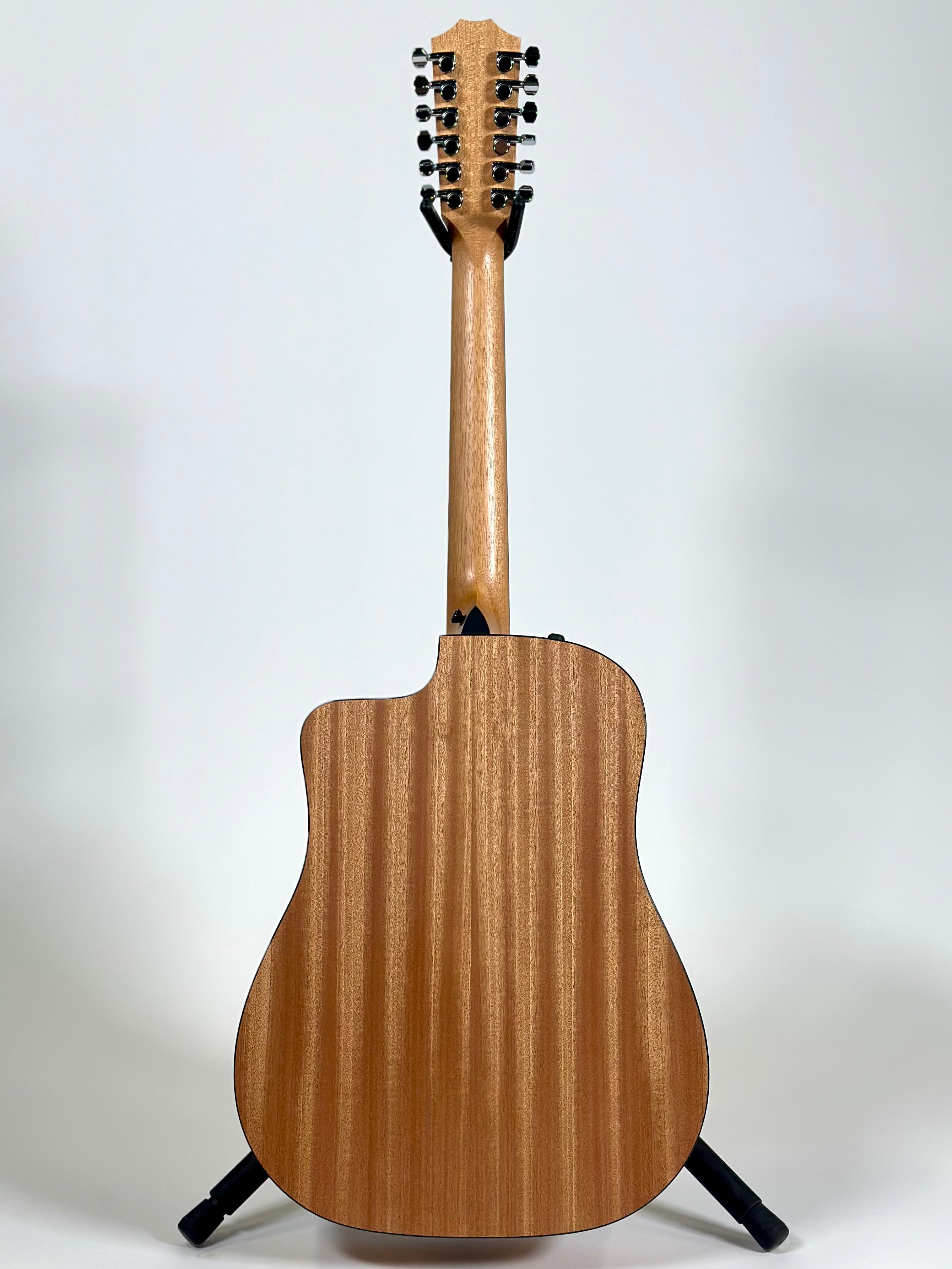 A great 12-string playing experience starts with a comfortable neck. That puts the Taylor 150ce ahead of the pack, with a slender neck profile that's accommodating to all types of players and makes it easy to hold notes and chords. A solid spruce top delivers a satisfyingly textured 12-string tone, clear and balanced with a rich low-end response thanks to the Dreadnought body style. With a dynamic sound that boasts plenty of volume as well as a pleasing soft-touch response, it's easy to see why the Taylor 150ce is one of the world's most popular 12-string guitars for budget-minded players.