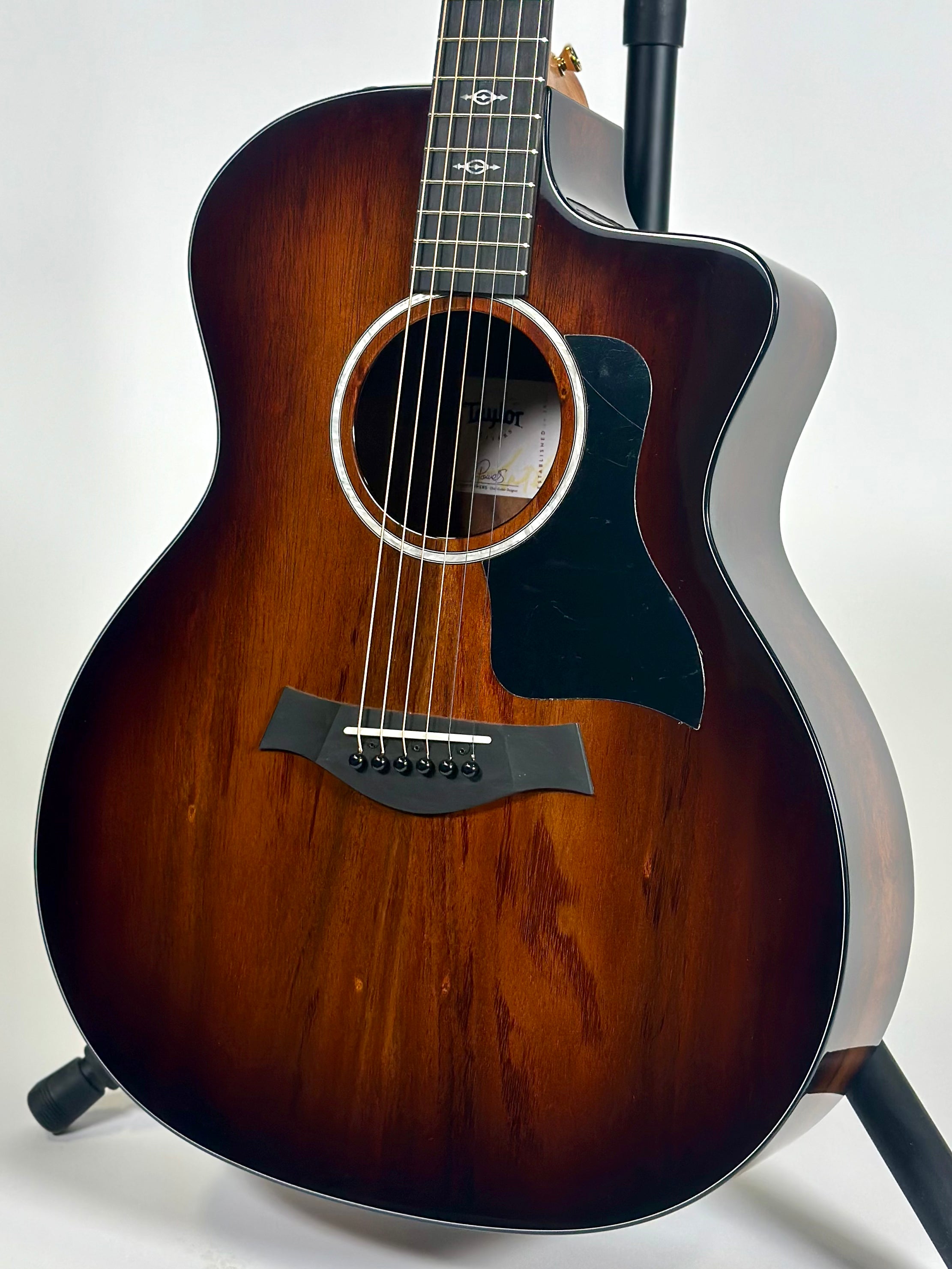 Players who love the sound and look of Hawaiian koa will appreciate the Taylor 224ce-K DLX, a Grand Auditorium acoustic-electric guitar with a solid koa top and layered koa back and sides. Tonally, expect koa's lustrous midrange and top-end sparkle, plus a dash of warmth in the low end that keeps things remarkably balanced. The slender Taylor neck makes for comfortable fretting, while the Venetian cutaway provides access to the highest frets on the genuine ebony fretboard. Visually, the 224ce-K DLX is appointed to inspire, sporting a full-body gloss finish with a shaded edgeburst that showcases koa's natural coloration. This model ships with ES2 electronics and a deluxe hardshell case.