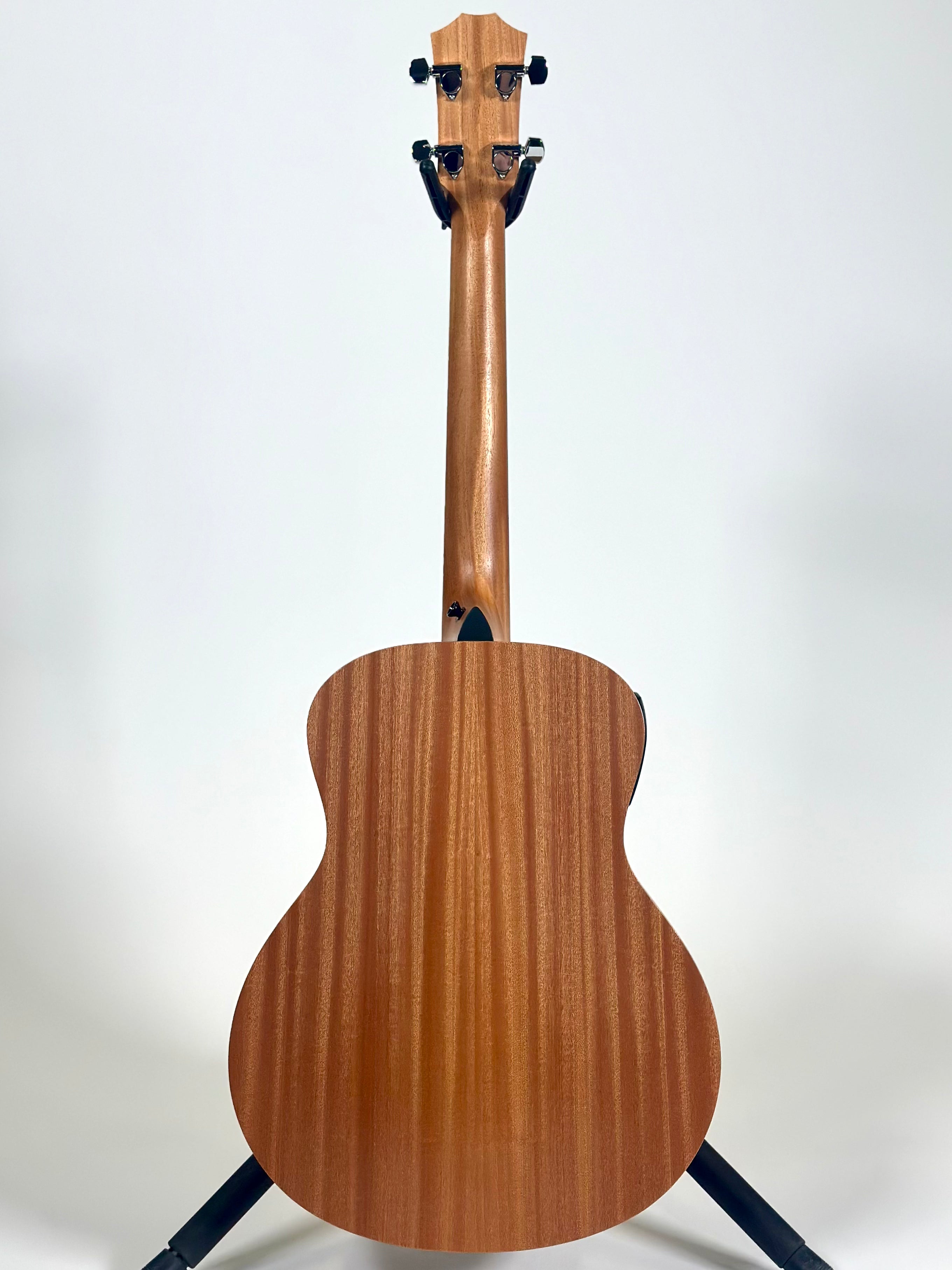 The new small-scale GS Mini-e Bass incorporates a proprietary string set developed by D'Addario, along with a Taylor-patented dual-prong bridge pin that was designed to optimize the string break angle and produce pleasing bass notes with the shorter scale length. The result is an inviting, portable and great-sounding instrument that makes playing acoustic bass more fun and accessible to a broader range of guitar customers.