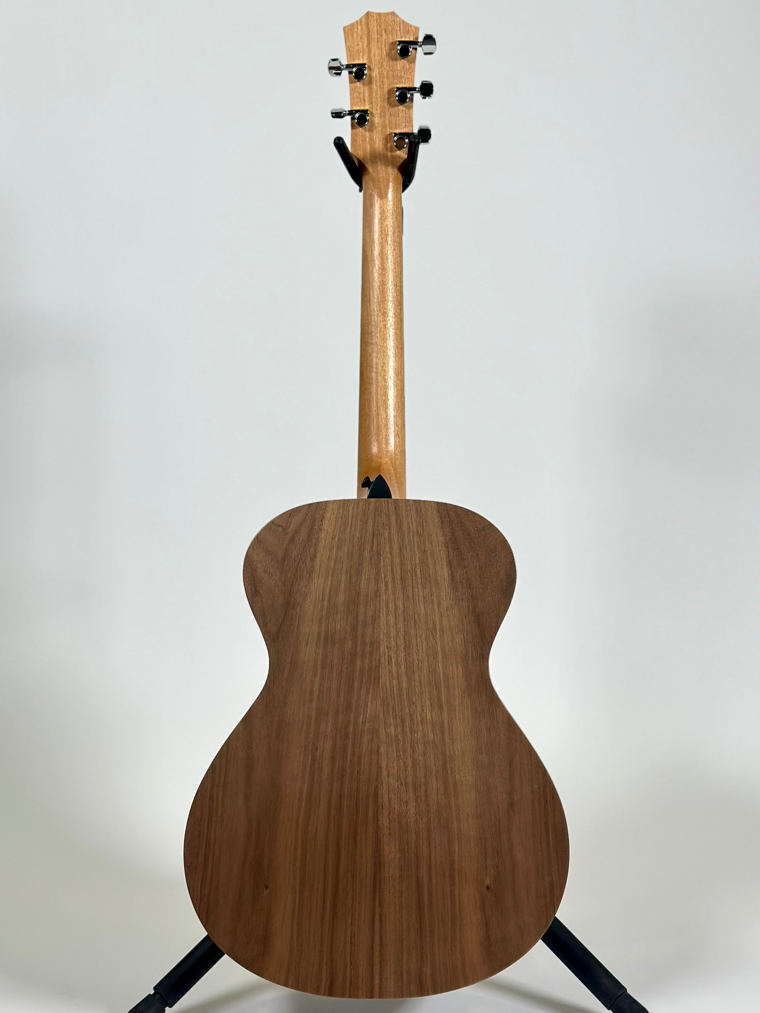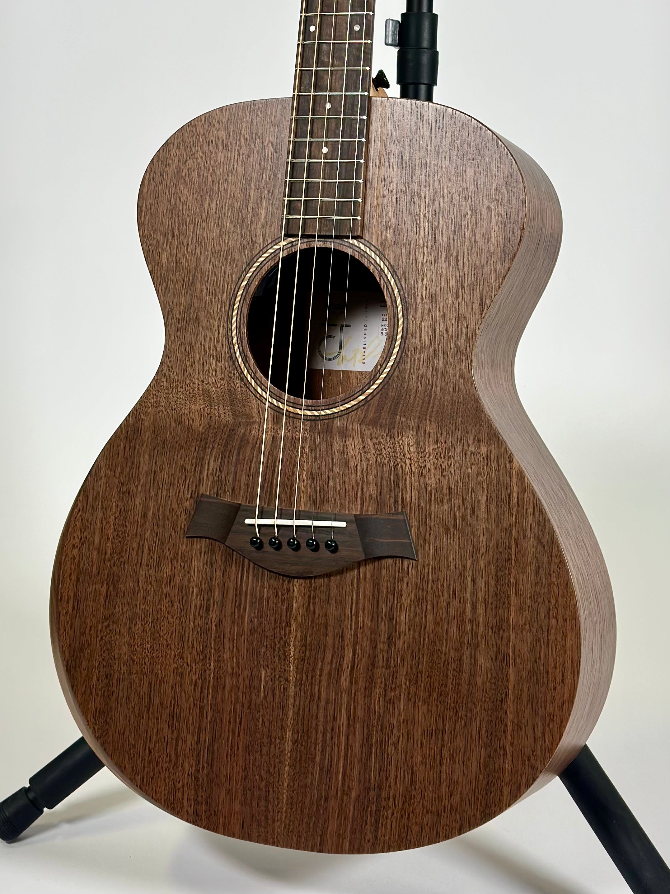 Building on Taylor's partnership with award-winning singer-songwriter, multi-instrumentalist and producer Jacob Collier, the Jacob Collier Academy 22e 5-String brings the custom DAEAD tuning that Jacob loves to more players than ever. This signature model is a compact Grand Concert acoustic-electric featuring a solid walnut top with layered walnut back and sides, serving up a warm, woody midrange tone with a clear treble range and plenty of presence in the low end, beautifully complementing the harmonic possibilities that come with the unique tuning intervals. Adding to its accessible feel is a built-in beveled armrest that offers a smooth surface for your strumming arm, while the slender Taylor neck makes fretting a breeze. Subtle visual details include a three-ring Baltic birch rosette, 4mm dot inlays in mother of pearl, nickel tuning machines, and a matte finish. It ships with Fishman Presys VT Sonitone electronics for rich plugged-in sound and includes a padded gig bag for protection.